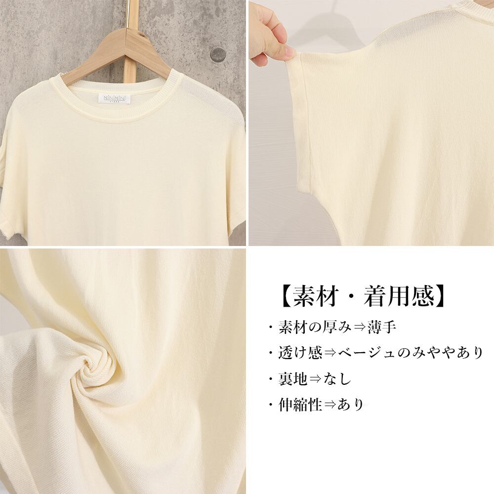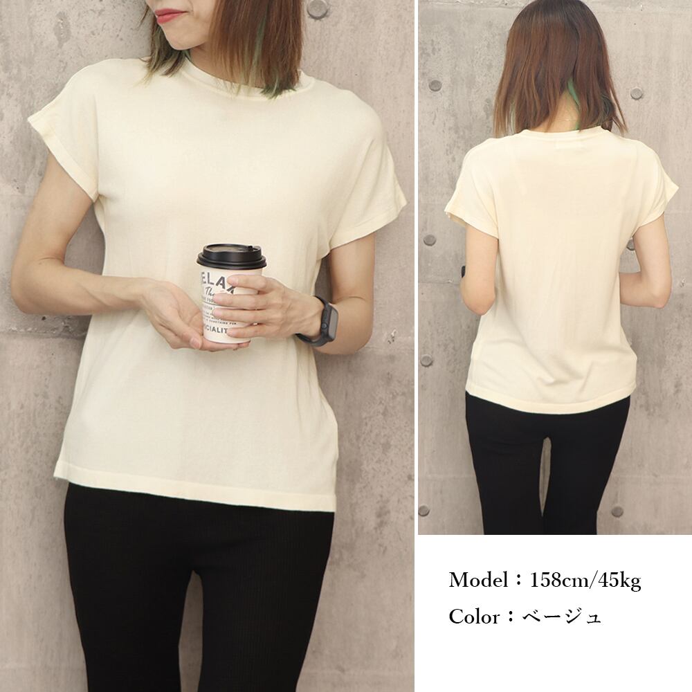 サマーニット レディース 半袖 ニットソー フレンチスリーブ ニットTシャツ 冷感タッチ 着やせ