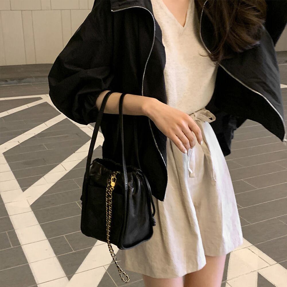 バルーンスリーブ黒 フード付トップス秋 アウター夏UVケア