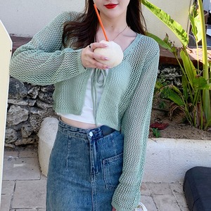 ヘルシー&女性らしい雰囲気をプラス、抜け感のあるざっくり編みのメッシュショート丈カーディガン