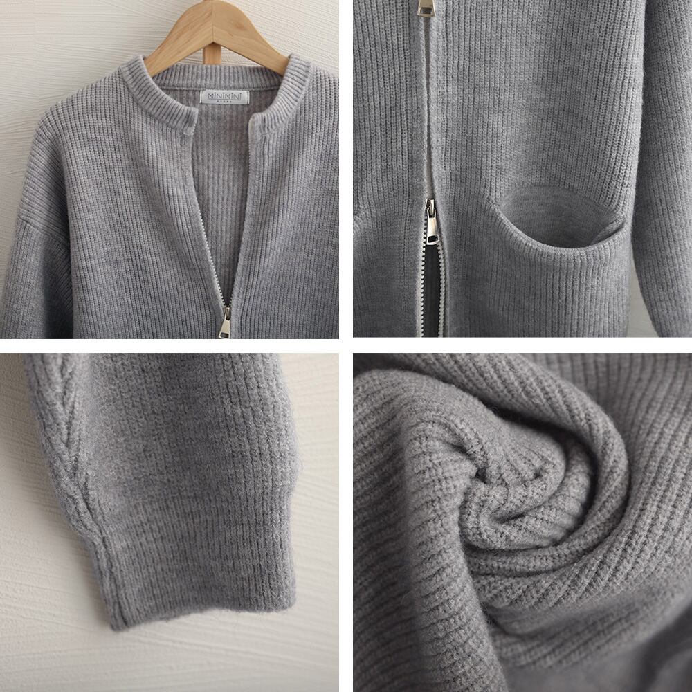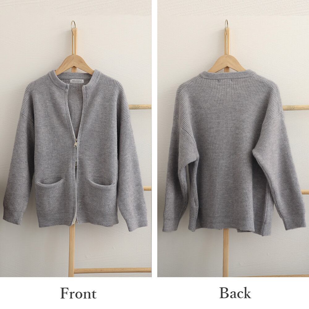 リブジップ カーデ ニットアウター大人 ニットウェアレトロ