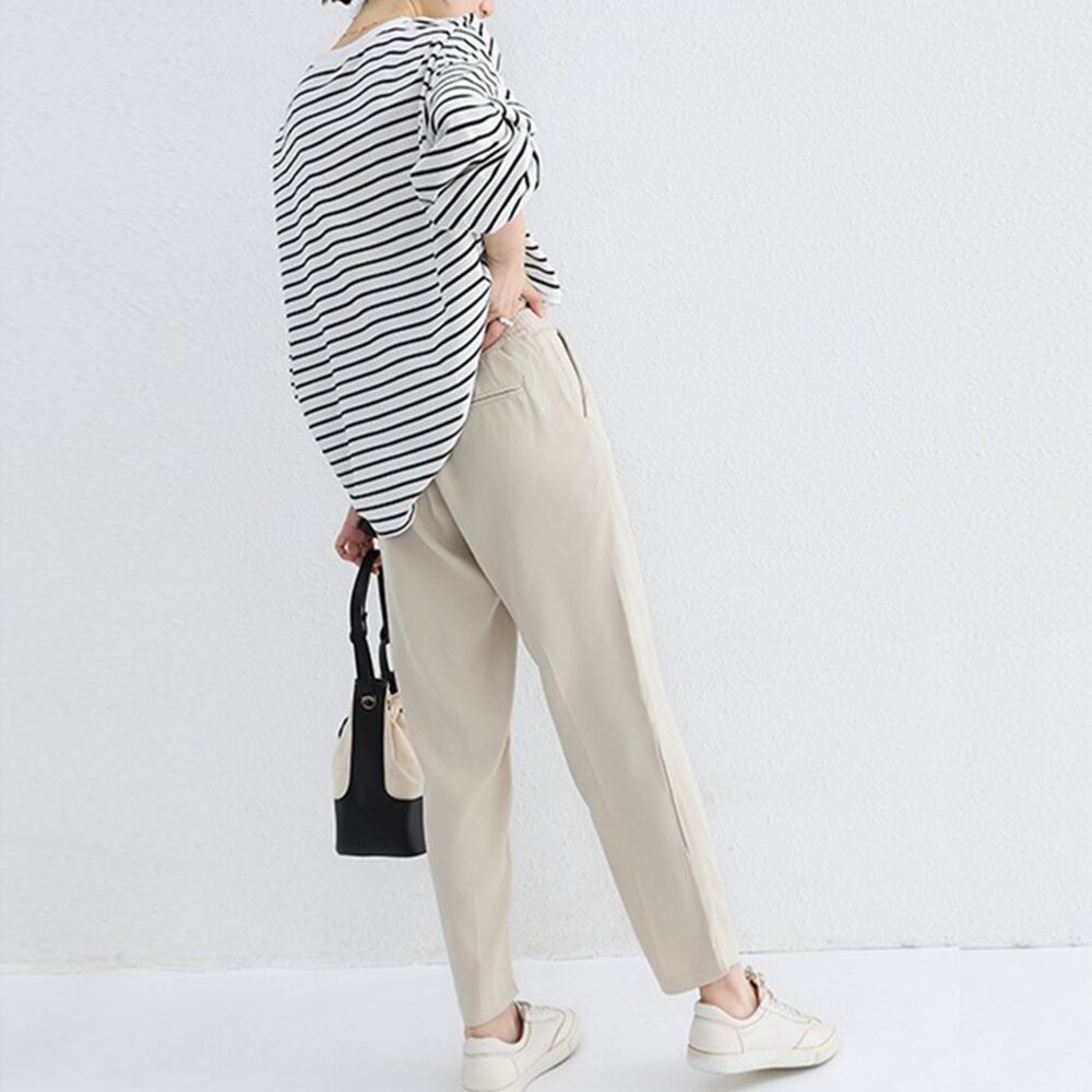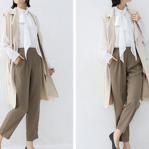 裾に向かって細くなるすっきりとしたシルエットがポイント、脚のラインを綺麗に魅せてくれるテーパードパンツ