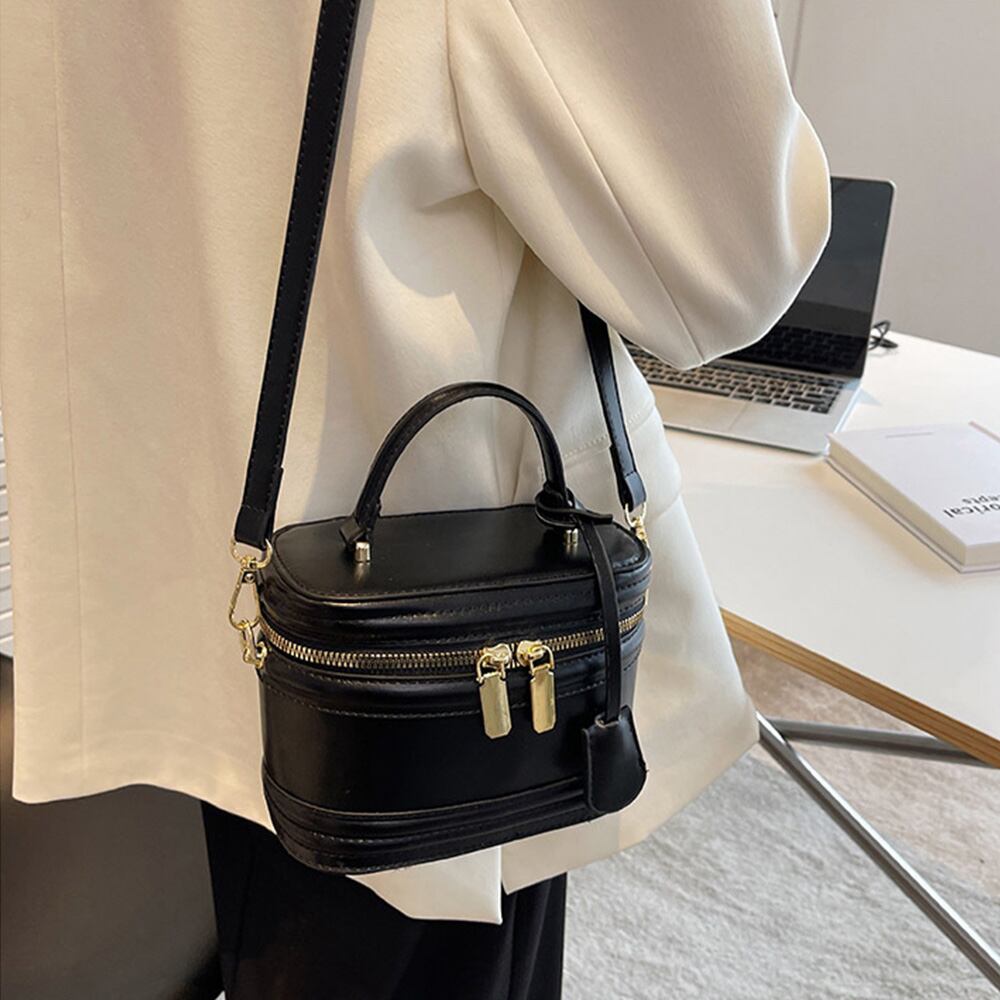 レトロ ミニショルダー 大人可愛いハンドバッグ 小さめ手提げバッグ 2WAY ファスナー バケツバッグ PUレザーかばん