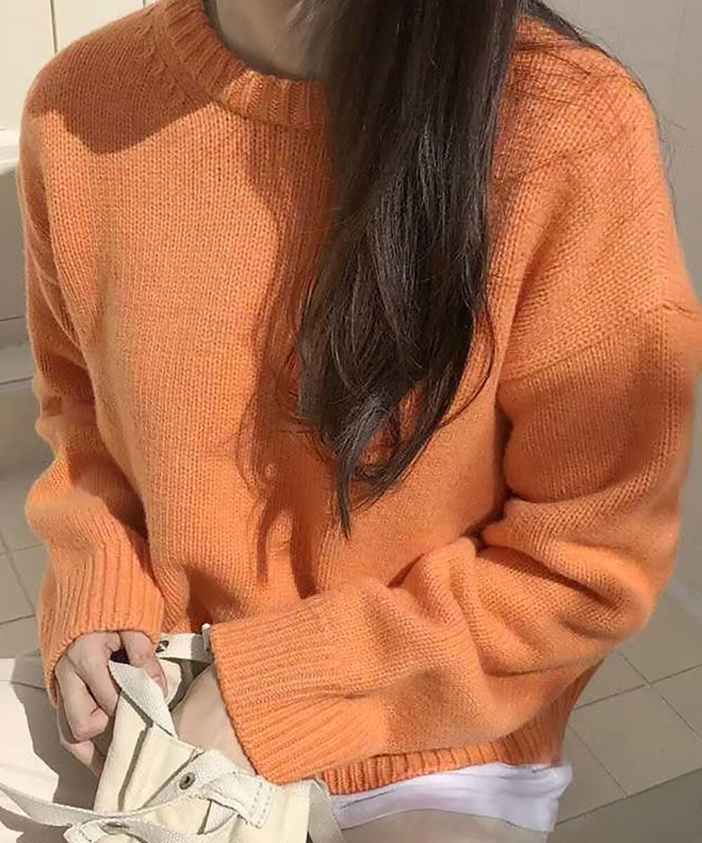 丸首カラーニット デイリー 秋ニット 可愛い ニットソー