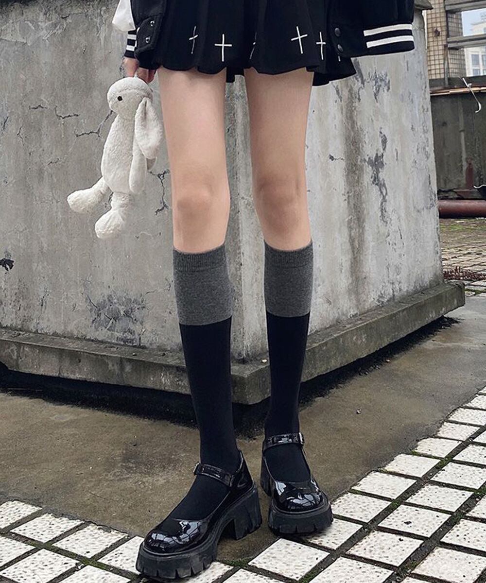 ニーハイソックス バイカラーレッグウェア レディース ツートンカラー ハイソックス ストレッチソックス