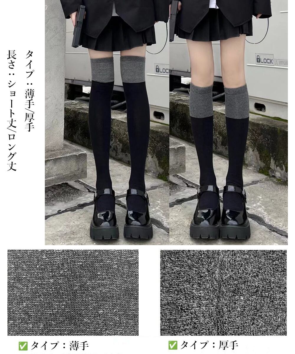 ロング靴下 女性用 スクールソックス 無地ソックス